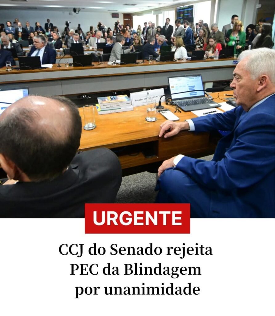 O plenário da Comissão de Constituição, Justiça e Cidadania (CCJ) do Senado rejeitou por unanimidade, nesta quarta-feira, a Proposta de Emenda à Constituição (PEC) 3/2021, conhecida como PEC da Blindagem. A proposta visava ampliar as proteções de parlamentares em processos judiciais.