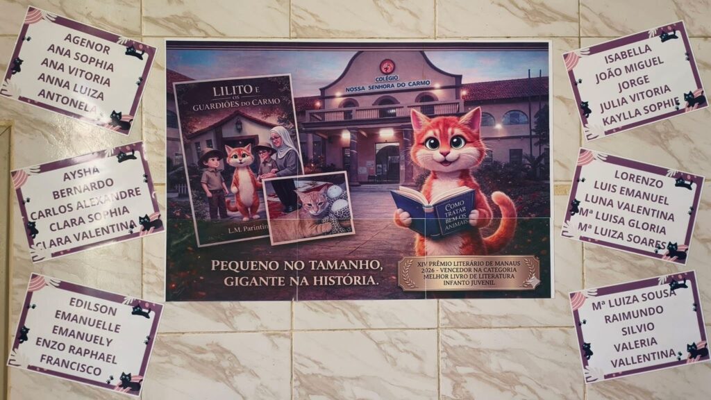 O projeto “Nosso mascote é um ‘santo gato’”, desenvolvido pelas crianças do Colégio Nossa Senhora do Carmo, acaba de conquistar o primeiro lugar no XIV Prêmio Literário de Manaus Elson Farias, na Categoria VII – Prêmio Alfredo Fernandes, destinada ao melhor livro de literatura infantojuvenil. O projeto campeão nasceu em 2025 a partir do olhar sensível e inquieto dos alunos sobre a causa animal.