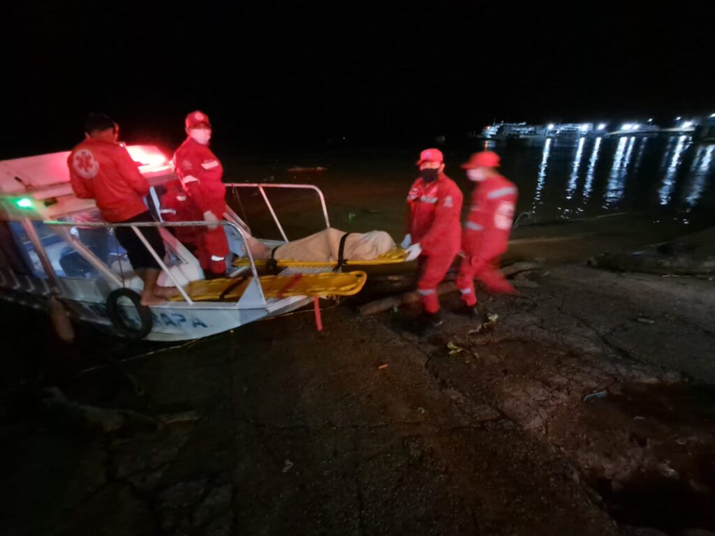 _Os corpos das vítimas, do sexo masculino, de 12 e 14 anos de idade, foram conduzidos em uma lancha para a sede do município com apoio da Defesa Civil e Central de Resgate_