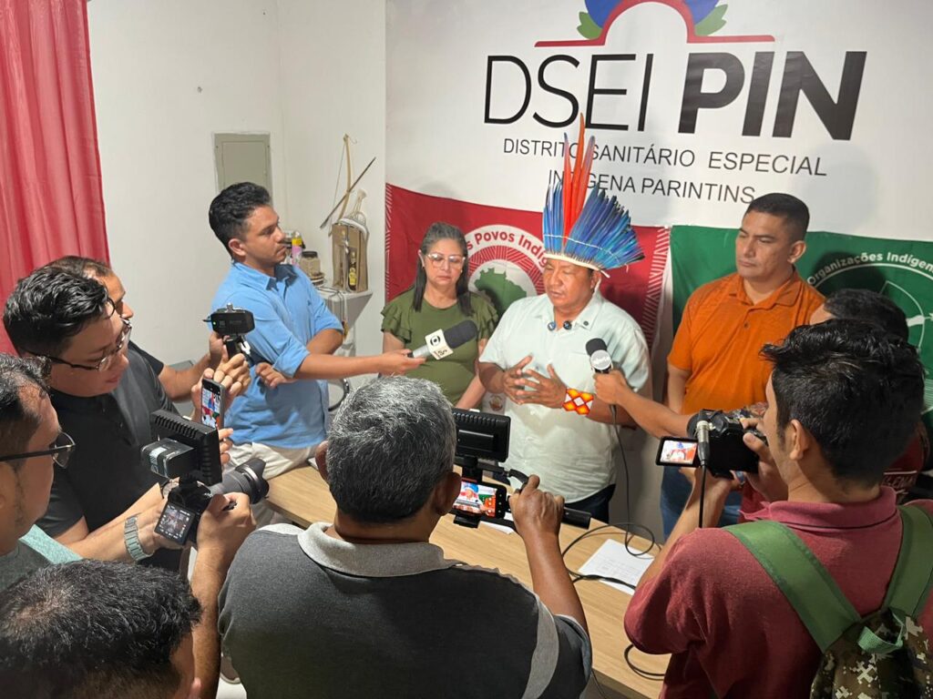 O coordenador do Distrito Sanitário Especial Indígena (DSEI) Parintins, Jecinaldo Sateré, divulgou, durante coletiva de imprensa na noite desta terça-feira (31), na sede do órgão, o cronograma de atividades do mês de abril, período em que é celebrado o Abril Indígena, com uma série de ações voltadas à saúde, infraestrutura, capacitações e parcerias institucionais em municípios e territórios indígenas da região. O coordenador estava acompanhado pelo chefe da Divisão de Apoio à Saúde Indígena (Diasi), Anderson Gondim, e pela chefe do Serviço de Edificações e Saneamento Ambiental Indígena (Sesani), Joelma Amaral.