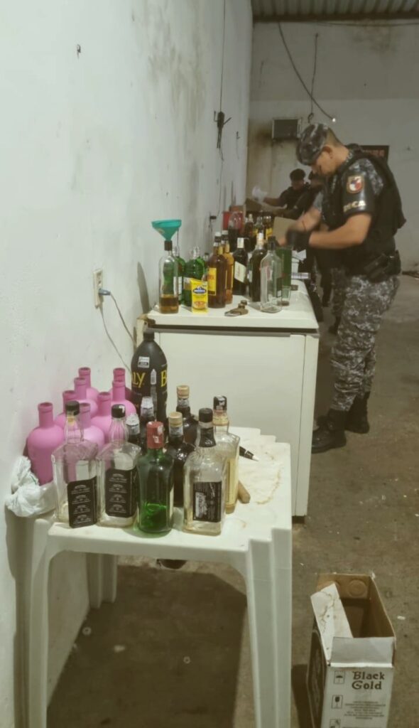 A operação, desencadeada por uma denúncia anônima, resultou na apreensão de um grande volume de materiais usados para falsificação. No total, os policiais das Rondas Ostensivas Cândido Mariano (Rocam) encontraram 54 garrafas da marca Black Gold, nove de Eternity Gin, seis de Tunqueray e outras 25 de marcas diversas. Também foram apreendidos 54 selos de lacre, 84 tampas, duas garrafas de xarope e rótulos falsos.