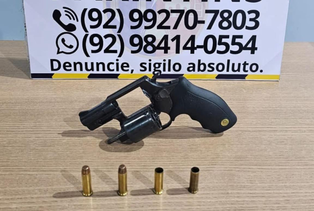 Durante a varredura no local, os policiais localizaram e apreenderam um revólver calibre 38. A arma estava carregada com quatro munições, sendo que duas delas já haviam sido deflagradas