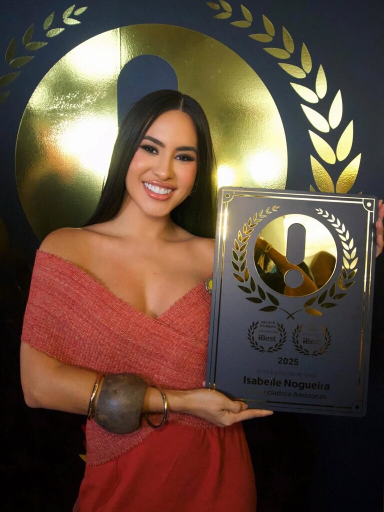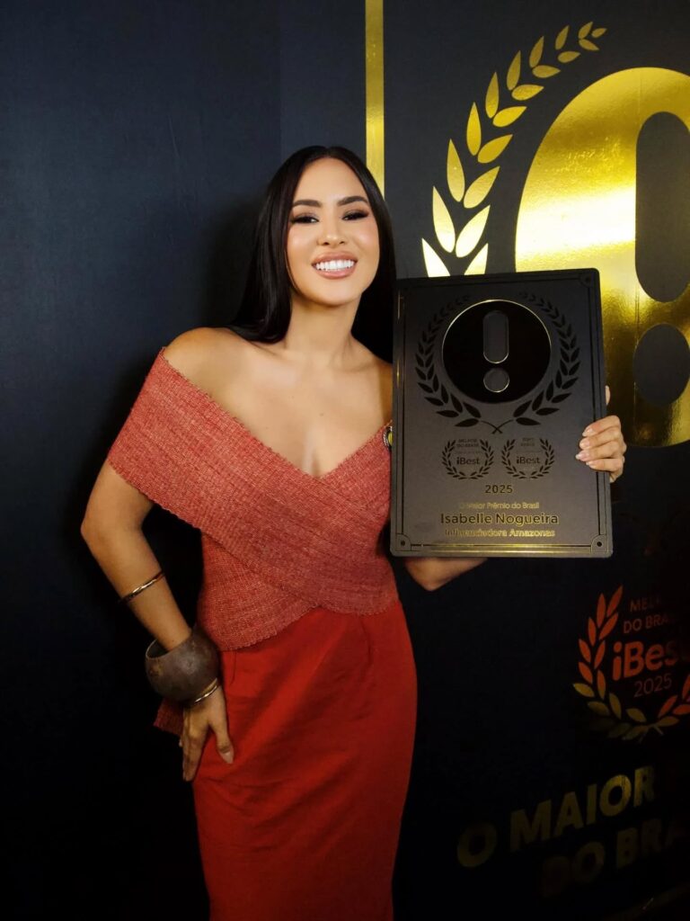 A cunhã-poranga do Boi Garantido, Isabelle Nogueira, foi premiada como influenciadora destaque do Amazonas, em reconhecimento concedido pela academia @premioibest, consolidando sua relevância nas redes sociais e na valorização da cultura amazonense.
