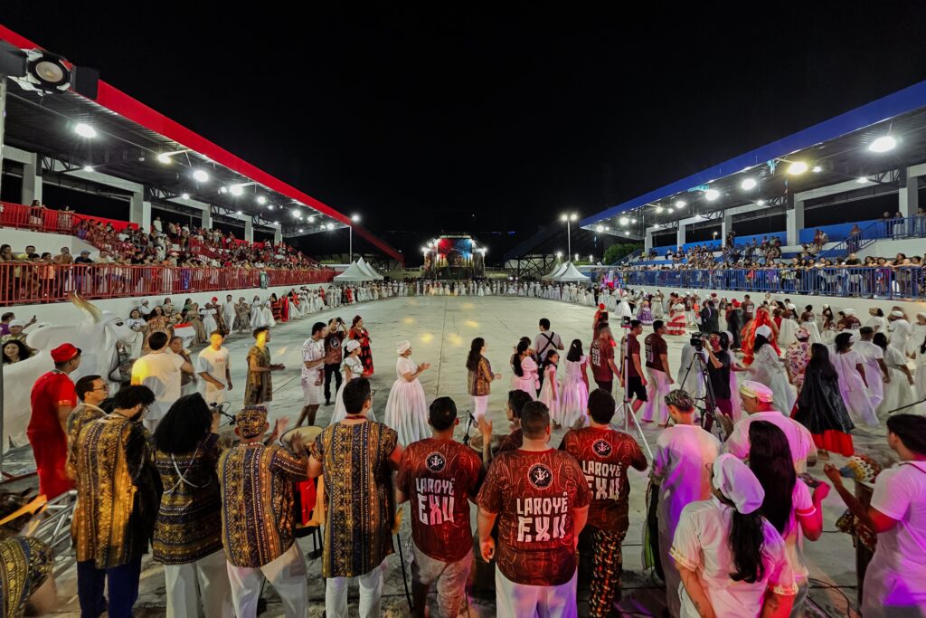 Além das apresentações dos povos de terreiros, outro ponto alto da noite foi as apresentações folclóricas dos bois bumbás Caprichoso e Garantido que reforçaram o apoio pela luta e diversidade cultural presente em Parintins.