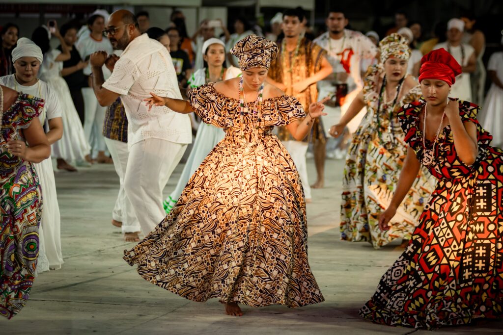 A noite foi marcada pelos cantos, danças e performances teatrais dos povos de terreiros no anfiteatro silas Marçal, como explana a Mãe de Santo, Márcia Gabrielle de Oyá. “Hoje nós preparamos uma programação que foi desde apresentações teatrais, dança de jongo, maculelê, e o ápice do nosso evento foi a grande gira no centro do anfiteatro pra celebrar, pra louvar, pra agradecer aos nossos ancestrais”, celebrou.